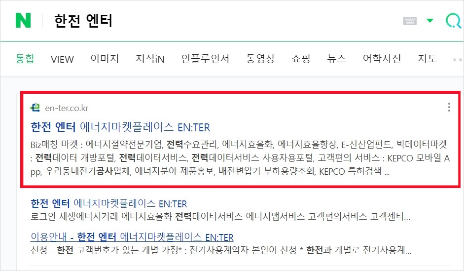 [한전 에너지 캐쉬백] 또는 [한전 에너지 캐시백]을 검색하면 네이버 검색에는 많은 분들이 포스팅한 블로그나 카페글이 먼저 뜨기 때문에 [한전 에너지 캐시백] 신청을 바로 하시려면 아래와 같이 [한전 엔터]를 검색하시면 됩니다.