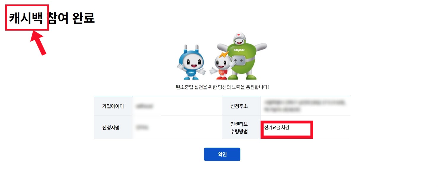 6. [전기요금 에너지 캐시백] 참여를 완료합니다.