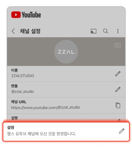 저기에 나와있는 주소를 복사해서 '짤스튜디오' 채널 주소에 입력합니다.