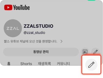 저는 채널 설정 버튼을 찾는데 조금 헤맸습니다. 연필모양의 버튼을 선택하세요.