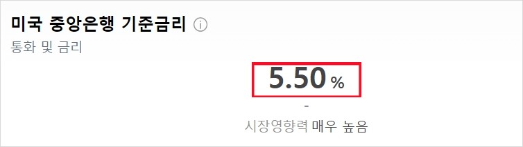 현재 미국의 금리는 5.5%입니다. (2024. 02. 15. 기준)