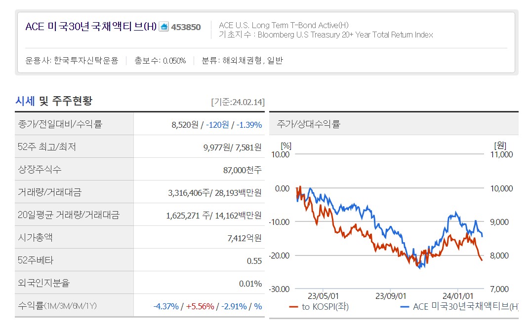 ACE 미국30년국채액티브(H) ETF 매도 시점?