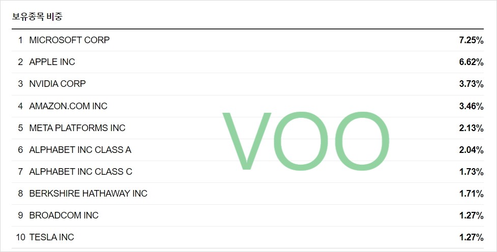 미국 ETF VOO ' 보유 종목을 보면 아마 많이 보셨을 만한 대표적인 미국 기업들이 있습니다.