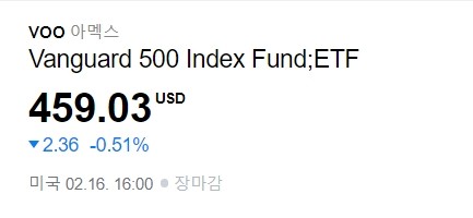 사실 많은 ETF의 보유 종목이 비슷한데요. SPY에 비해 운용 수수료도 낮다고 하니 혹시 관심있는 기업을 포함하는 ETF를 찾으신다면 VOO를 생각해보셔도 좋을 듯 합니다. 물론 VOO의 1주의 가격은 460달러로 생각하고 1300대를 계산하면 60만원 정도 되네요.