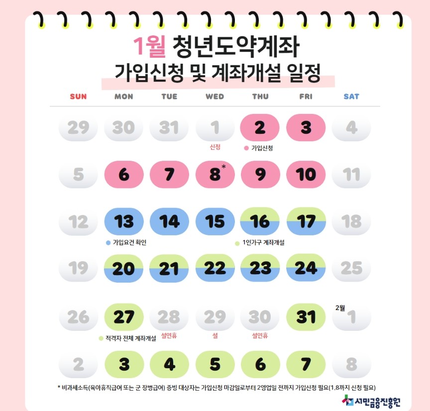청년도약계좌 1월 시행 기간이 위에 나와있으니 참고하시기 바랍니다.