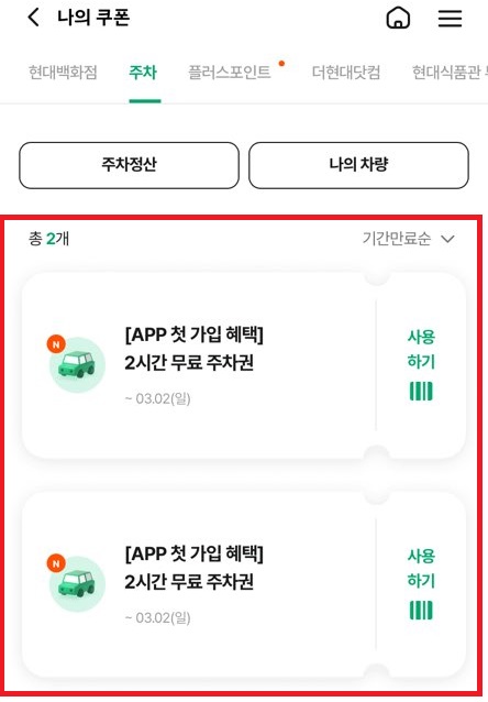 현대백화점 무료 주차권 받는 방법