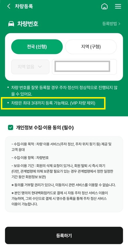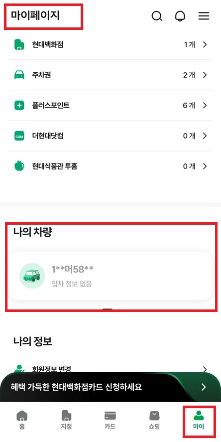 마이페이지에서 '나의 차량'을 등록하세요.