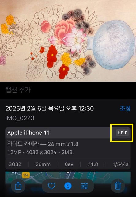 보시면 해당 이미지의 확장자가 HEIF 혹은 HEIC인 것을 확인할 수 있습니다.