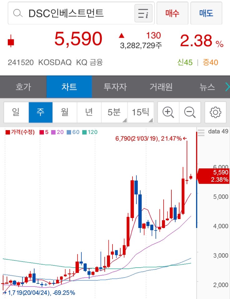이미지는 삼성증권 2021년 3월 22일 주가를 캡쳐한 겁니다.