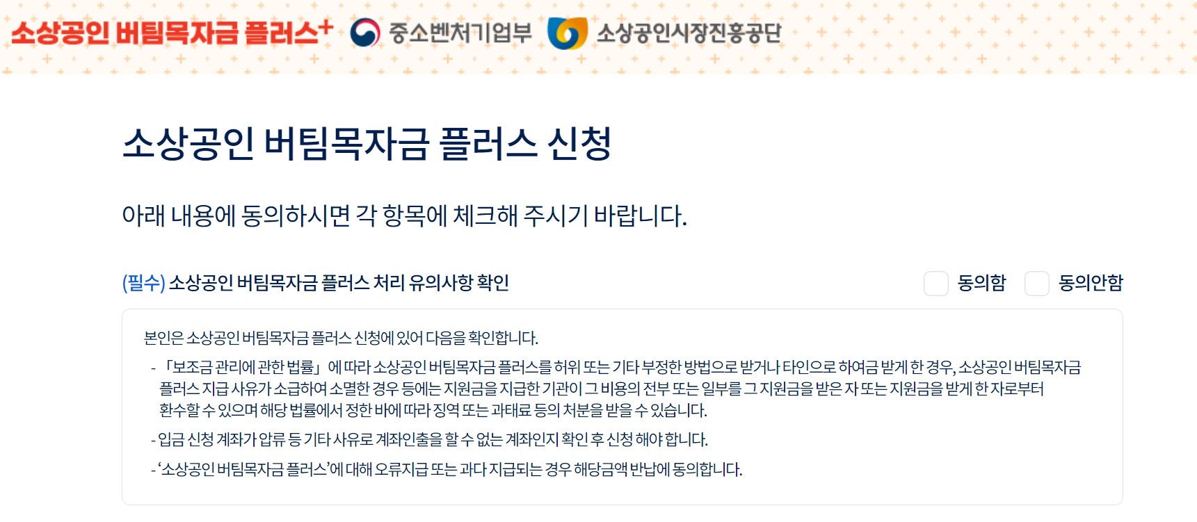 소상공인 버팀목 자금 플러스 홈페이지
