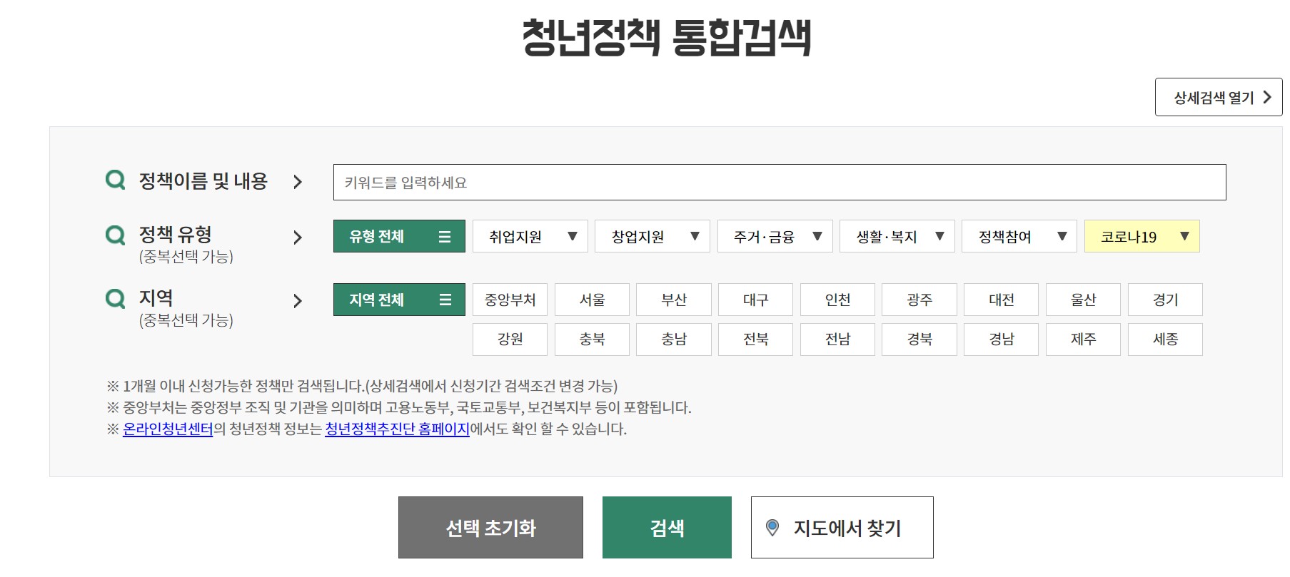 나에게 필요한 청년정책을 상세 검색할 수 있습니다.